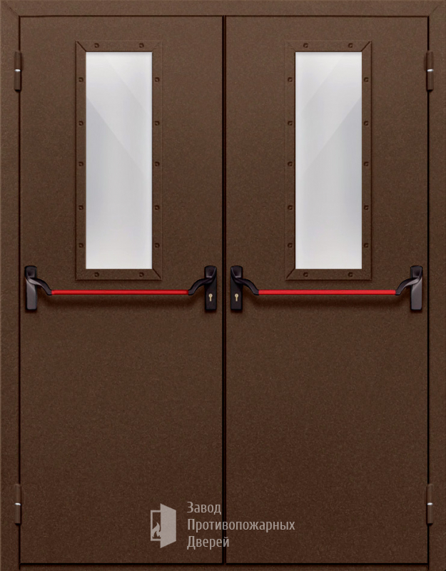 Противопожарная Двупольная дверь с прямоугольным стеклом ДПМ-02-EIW60 с антипаникой |