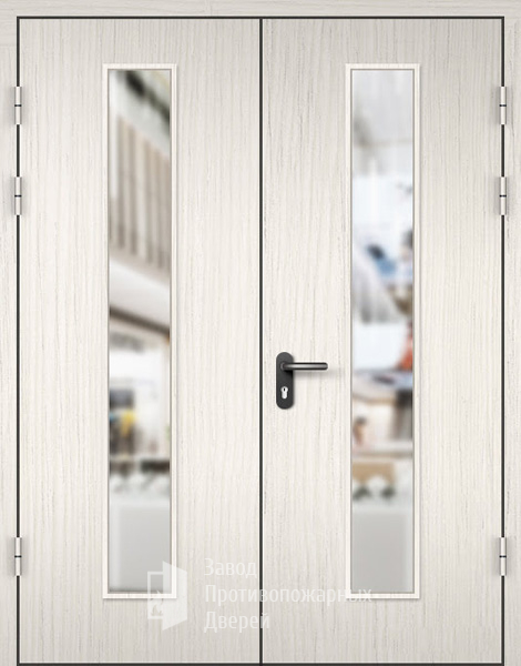 Маркировка Противопожарная Двупольная дверь МДФ с прямоугольным стеклом ДПМ-02-EIW60