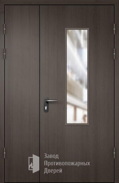 Маркировка Противопожарная Полуторная дверь МДФ с прямоугольным стеклом ДПМ-02-EIW60