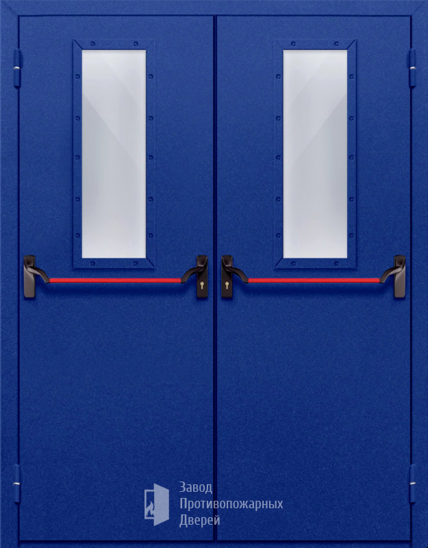 Противопожарная Двупольная дверь с прямоугольным стеклом ДПМ-02-EIW60 с антипаникой |