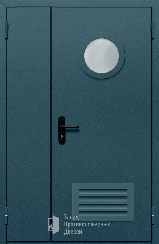 Маркировка Противопожарная Полуторная дверь с круглым стеклом ДПМ-02-EIW45 с решеткой