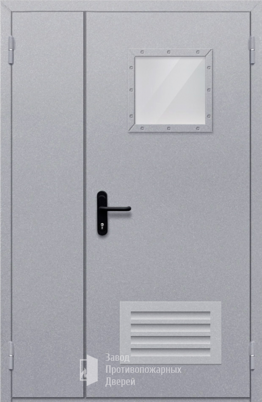 Противопожарная Полуторная дверь с квадратным стеклом ДПМ-02-EIW60 с решеткой |