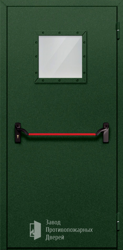 Противопожарная Однопольная дверь с квадратным стеклом ДПМ-01-EIW60 с антипаникой |